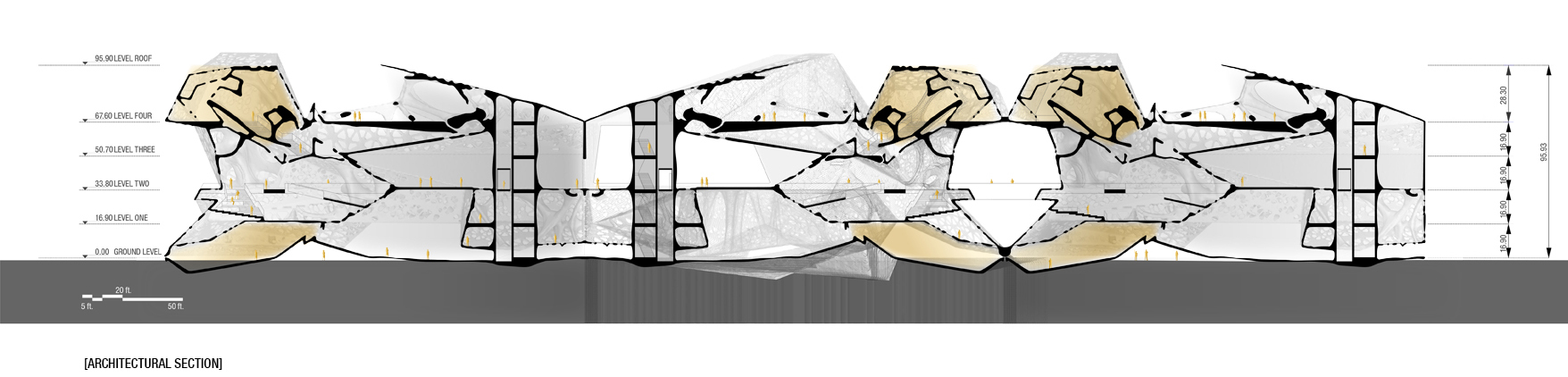 Through the study of the city wifi network, it is found that desire for information and learning is from new encounters either from travelling or meeting different people or being in unfamiliarized settings. According to this, the design try to address three scenarios. First, creating high density of population group and get them encountering each other. Second, making the travelling time as long as possible so that the visitors could have different interface to experience. Third, trying to create different sensory possibilities, regarding to the various composition scales of the space, diversified materials, rich visual connection.
